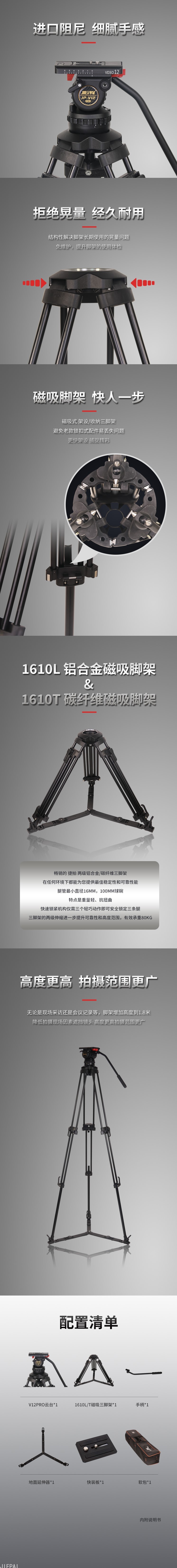名称:JIEPAI捷拍 JP-V12L PRO液压云台磁吸脚架铝合金套装 产品价格:¥3180.00
