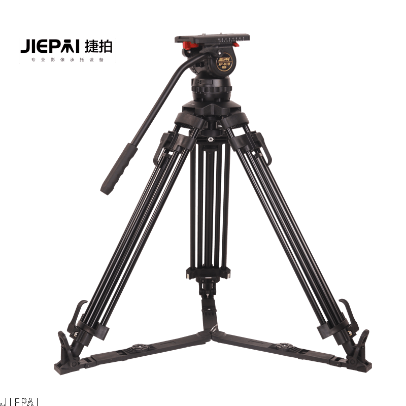捷拍JIEPAI JP-v18液压云台三脚架。100MM通用性碗口,19MM大管径脚架,保证脚架的稳定性,当前市场同型号管径最大 稳定性最好的脚架避免头重脚轻。采用进口阻尼脂,水平/俯仰阻尼8档可调,细腻的阻尼划分,在拍摄中可以保证平滑、无卡顿,快速找到适合您的阻尼手感,提供一个最佳的拍摄平台。8级平衡系统由先进的抗扭矩橡胶弹力系统构成,并添加1档动平衡释放扳档,真正实现0-20KG大小机型通吃,避免承重小机型时弹力过大的尴尬处境,同时并没有牺牲动平衡的最大平衡力。v18可以说是v20/v25的低配型脚架,性价比非常高。